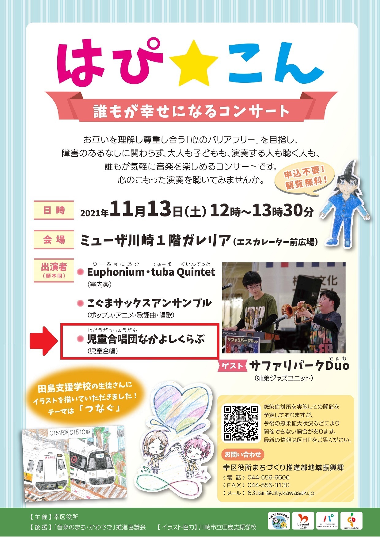 2021/11/13(土)ミューザ川崎1階ガレリア広場で開催されます「はぴ☆こん」に出演いたします。 児童合唱団なかよしくらぶの出演は12:40分頃になります。