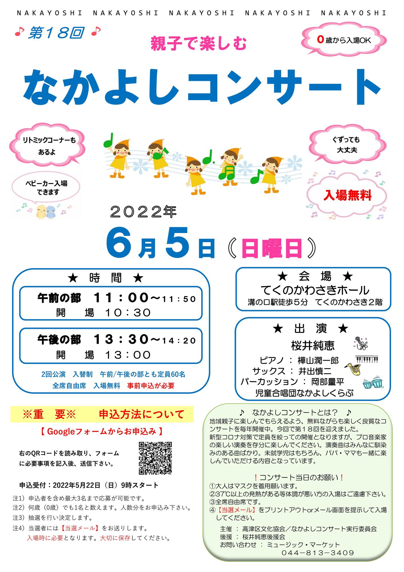 地域親子のための楽しいコンサート。今回で18回目を迎えます。プロ音楽家4名と児童合唱団なかよしくらぶが出演します。