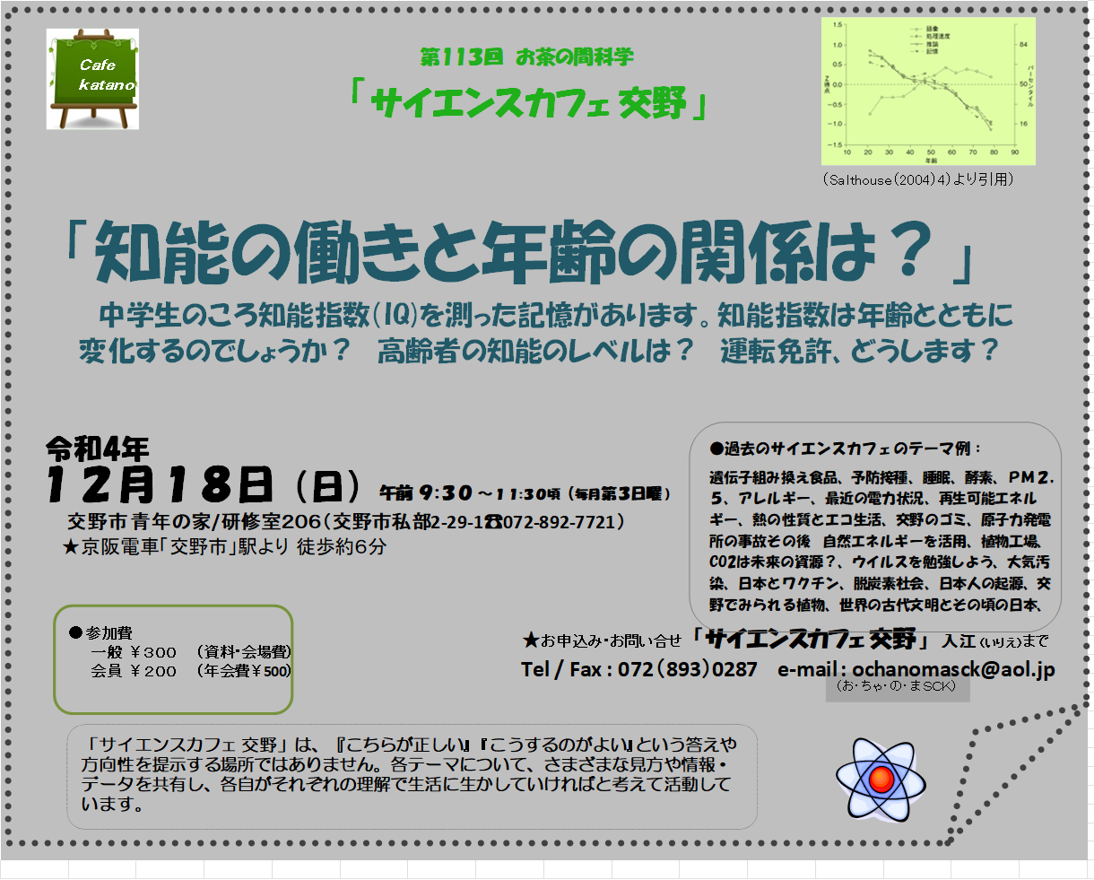 2022/12/18(日)中学生のころ知能指数(IQ)を測った記憶があります。知能指数は年齢とともに変化するのでしょうか? 高齢者の知能のレベルは? 運転免許、どうします?